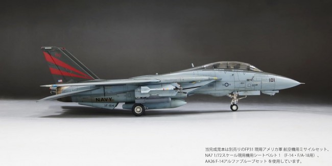 1990年代後半、F-14はLANTIRNポッドの搭載によって夜間侵攻およびターゲティング能力を獲得。 従来のミサイルに代わって胴体下にスマート爆弾を懸架し、攻撃機としての進化を遂げました。 2001年に勃発したアフガン戦争では、友好国の飛行場が近くに存在しないという厳しい条件の中、その長大な航続距離と柔軟な運用能力を活かして任務を遂行。 可変翼(VG翼)による優れた低空性能と大きな搭載力が、高精度爆撃機としての役割を果たし、戦歴のフィナーレを鮮烈に飾りました。 本キットでは、VF-154(通称:ブラックナイツ)が2003年アフガニスタンから日本へ帰還した直後のマーキングを再現。 F/A-18Fへの機種更新により、短期間でアメリカ本国へと帰国しましたが、その姿は“日本で見られた最後のF-14”として多くのファンの記憶に残る機体です。 胴体下の爆弾懸架ラックは新規パーツとして追加しています。 シリーズ名 1/72 スケール ジェット機 (限定品)