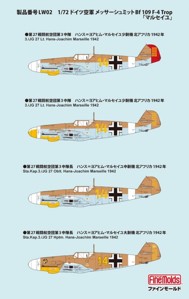 1/72 メッサーシュミット Bf 109 F-4 Trop マルセイユ ファインモールド