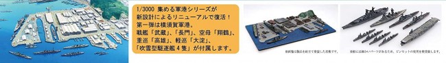 第一弾は横須賀軍港の情景と艦「武蔵・長門・翔鶴・高雄・大淀・吹雪型4隻」のセット。