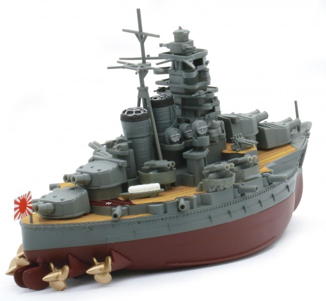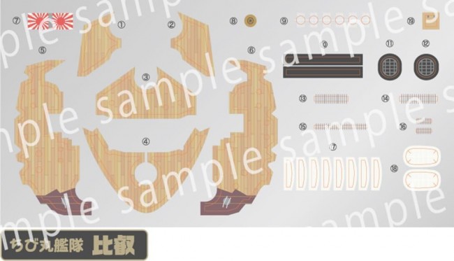 デフォルメ可愛い 「ちび丸 比叡」が復刻登場! ちび丸艦隊シリーズは外観をデフォルメし、集めたくなる手のひらサイズで可愛い姿にしたものです。 接着剤不要のスナップフィット式設計、多色成形とリアルシールで塗装不要。 艦体と艦底で分割された設計なので洋上タイプでもフルハルタイプにでもできます。 別売りの専用台座を使用することでより楽しめます。 可愛いデフォルメした比叡を簡単に組立て再現できます。 製品は昭和17年第三次ソロモン海戦に出撃した第三戦隊「比叡」をモチーフにしています。 霧島の主砲は側面装甲板が曲面で構成されたのに対し、比叡の主砲は平板という違いを専用部品で再現。 艦橋下部に対空機銃を装備している最終時頃の姿を再現。 探照灯櫓の配置差もリアルに再現。 艦底は艦底色、艦体上部は軍艦色で成形。 甲板部分は追従性の良いリアルシールで、塗装なしでも繊細なモールドをバッチリ再現可能。 シールには複雑な木目模様を再現した木甲板、軍艦旗、艦橋窓、探照灯レンズ面、防水覆などを収録。 比叡専用ネームシールが付属。