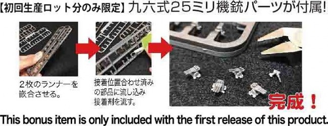 ・初回生産ロット分にのみ限定で九六式25ミリ機銃パーツが付属。