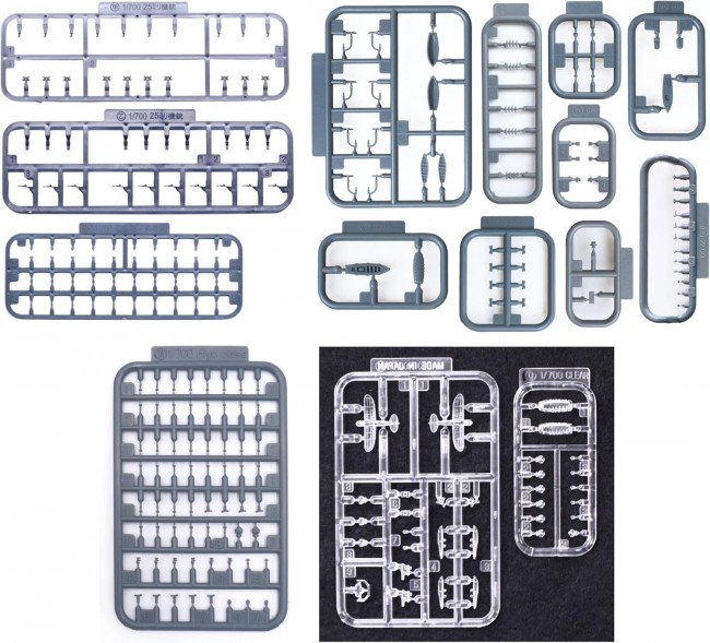 無条約時代の新鋭軽巡洋艦~大和と出撃した最終時と昭和19年時の選択仕様になって登場 (基本仕様) ●製品は複数の年次状態から選択できます。 ・昭和20年4月の天一号作戦による大和と共に沖縄へ出撃した最後の姿で、25ミリ単装機銃を28基搭載。 ・昭和19年6月末からのマリアナ沖海戦後、25ミリ単装機銃18基を搭載、航空作業甲板の形状変更前。 ・昭和19年6月のマリアナ沖海戦時で、単装機銃は増強されていなかったとされる姿。 (構造・仕様・特徴) ●それまでの日本軽巡洋艦の流れとは異なる近代的な阿賀野型の形状を余すことなく再現。 ・艦体は左右分割設計パーツ。 竣工時に比べ舷窓は閉塞され数が減じた姿を専用部品で再現。 ・舷側全周囲を走る舷外電路は、留め具部分まで表現した繊細な彫刻。 ・甲板および艦橋各層にはリノリウム敷を表現する押さえ金具や鉄甲板の滑り止め・ストリップ模様をメリハリある彫刻で表現。 ・艦橋前方のシェルター部はスライド金型を用い一体パーツ化。 側壁に緻密な彫刻と造形に。 ・主砲塔はスライド金型で側面と上面に窓やラッタル・鋼板継ぎ目を再現。 ・煙突頂部の格子は抜けた状態でリアルな造形、内部の整流板も別パーツで立体化。 ・煙突は左右分割設計パーツ、モンキーラッタルも彫刻で細密に表現。 ・蒸気捨管はそれぞれ独立パーツとして姉妹艦との差を表現。 ・マスト下部の三角錐トラスはスライド金型を使用して抜けた状態としています。 ・航空作業甲板の後端両舷にある小型クレーンは別パーツで立体的かつ正確に再現。 ・4.5メートル高角測距儀は円柱状の腕部形状を正確に形状か、専用部品として封入。 ・22号電探・舷梯(格納)・方位探知アンテナ・補用翼格納所などを別パーツで余すことなくパーツ化 ・長8センチ連装高角砲はシールドと砲身を別パーツ化し新規専用設計品として収録。 ・水偵揚収クレーンは側面の軽め穴までを再現し精密感を上げています。 ・搭載水上偵察機は零式(三座)水上偵察機を2機収録。 成形色は風防がリアルに仕上がるクリアー。(スタンダード仕様は灰色成形色) ・付属デカールは2種類、艦載水偵のマーキング用デカール1枚と艦尾艦名やマスト白線用デカール1枚付属。 ●PLUSバージョン仕様はスタンダード仕様とは異なり以下の置き換えパーツが付属します。 ・25ミリ連装機銃:精密な造形、塗分けが容易な構造の2パーツ式で2018年起用金型パーツが標準封入。 ・双眼望遠鏡:艦橋防空指揮所には精密感を増す偵察見張用の双眼望遠鏡パーツが付属。 ・13号電探:トラス構造に彫刻表現、空中線部分も形状表現を行った新規封入パーツ。 ・21号電探:前面側の素子固定用碍子基部など従来の付属パーツより繊細な彫刻で表現しています。 ・22号電探はスライド金型起用により開口した状態をパーツ化、ラッパ状が延長された形状にすることも可能。 ・9メートルカッター:塗装を考慮し2パーツ化、架台は別パーツ部品を用意、甲板一体モールドとの選択が可能。(一部箇所除く) ・菊花紋章:艦首の菊花紋章を新規に用意。 ・舷灯:新規に用意、これまで省略していた部分で追加表現用に。 【付属内容】 ランナーx36 ・組立説明書x2 ・デカールx2 モニターや画像解像度の問題により、色の見え方が実際の商品と異なることが御座いますので、予めご了承下さい。 (フジミ模型 ウェブサイトより)