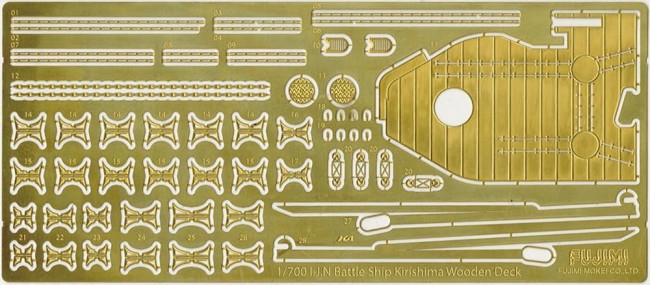 金剛型4番艦「戦艦 霧島」にエッチンク゛ハ゜ーツと木甲板シールが付属して登場! 金剛型4番艦。 三菱合資会社三菱造船所にて建造されました。 真珠湾攻撃、ミッドウェー海戦や第二次ソロモン海戦、南太平洋海戦などに参加。 インド洋作戦時には金剛型4隻が揃い、作戦を共にしました。 製品は開戦時の姿をモチーフにしています。 デカールには日の丸などの艦載機マーキング、軍艦旗を収録。 インジェクションパーツでは再現の難しい、細部に至るまで表現できるエッチングパーツを封入。 エッチングパーツには、梯子、手摺、ラッタル、カタパルト、クレーンなどを収録。 木甲板シールは専用サイズで仕上げられ、裏紙を剥がせばそのまま飛行甲板パーツへと貼り付けることができます。 甲板パーツに合わせてあらかじめカットされており、塗装では表現が難しい細かなラインの入った木甲板の模様がシールで簡単にリアルに再現可能です。 木甲板シールは、レーザーカッターで表面加工し、不規則性な木目調を再現。