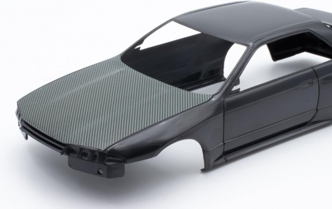 カーボンボンネット再現用デカールを新規作成!E.A.S搭載のスカイラインGT-R(R32)がスポット生産バージョンで登場! 新金型パーツとしてシャーシのサスペンション構造を新設計。 ステアリングとアライメントギミックにより様々なスタイリングにセッティング可能! "4輪独立無段階車高調整機構と4輪独立無段階キャンバー調整機構により、 ノーマル車高・シャコタン(ローダウン)・レーサー(ハの字)など自由なスタイリングにセッティング。" "4輪独立したサスの伸び縮みが表現できるので、動き(姿勢変化)のあるジオラマ制作も可能となります。 (ブレーキング(前輪:縮/後輪:伸)、コーナー(イン側:縮/アウト側:伸)など)" 従来のポリキャップ素材を車高・キャンバーの無段階スライド構造に利用しなめらかな調整を実現。 完成後にも調整可動なギミックなので長く飾って楽しめます。 ホイールはガンメタ調のメッキ表現です。 フロントグリル用のメッシュを収録。 ウィンド周囲のブラック塗装用にマスキングシートが付属。印刷線に従い切り抜いて使用します。 デカールにはロゴマーク、ナンバープレートに加え多様なマークを収録。
