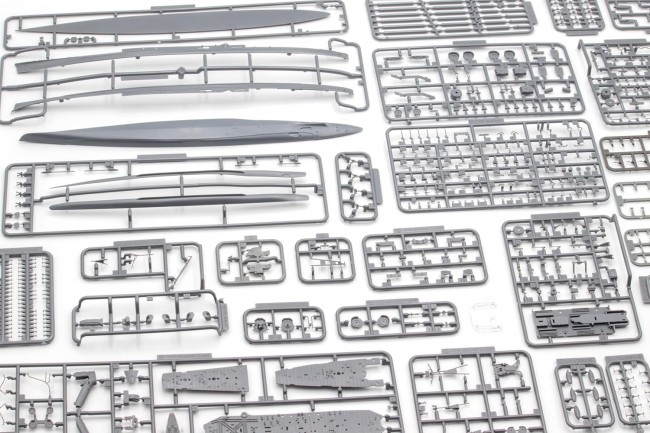 昭和19年10月最終時姿のフルハルタイプモデルを追加専用金型により製品化 【基本的仕様】 ・製品は接着組立と塗装を必要とする未塗装キットです ・スケールは1/700で、艦底部を含むフルハル仕様です ・従来(特シリーズ)の金型と新規追加金型で構成された製品です ・喫水線下は2025年、洋上部分は2019年設計金型で製品構成 【製品仕様】 ・製品は最上型4番艦「熊野」の昭和19年10月捷一号作戦(レイテ沖海戦)時をモチーフにしています →1.2番艦の最上/三隈とは異なる艦体断面形状、缶室減少による給気トランクの違いを再現 →戦訓改造された機銃や電探を装備する昭和17年時との差を専用部品で用意 →3番艦の鈴谷との差異である後部マストやジブクレーン形状などを専用パーツで再現 ●艦体 ・最上型後期艦「熊野・鈴谷」の舷側(中甲板レベル)が傾斜した形状の艦体パーツは専用品 →舷側断面形状が前期の最上・三隈とは異なる専用金型部品です →高角砲甲板の幅は最上/三隈に比べ1.0mm(模型上)幅狭の専用部品 →舷外電路は艦体に一体モールドとし、最上/三隈とは異なる走り形状を表現 ・舷窓は戦訓による閉鎖を実施した姿 →昭和16~17年時の熊野を含めた重巡最上型とは別に用意した専用金型で再現 ・左右で分割式のパーツ構成 ●艦橋 ・艦橋窓はよりリアルに仕上げられる透明パーツ ・艦橋側方に缶室給気口がある熊野/鈴谷専用とした艦橋構造物パーツを起用 ・防空指揮所、および羅針艦橋の床面には繊細なグレーチング敷きを彫刻表現 ・防空指揮所には取り付けるだけで精密感増す双眼望遠鏡パーツが付属 ・艦橋前方に増設された機銃座を専用パーツで用意、昭和17年時との差異を再現 ・前部マストは高さ・横桁高さの個艦特徴を再現する鈴谷専用パーツ →21号電探1基/22号電探2基およびE27逆探を装備した姿 →22号電探はスケール感を追求した極小サイズでリアルな造形 ●艤装品/中央部 ・熊野は鈴谷と同じボイラー10缶搭載の特徴である細い煙突を用意 →最上・三隈の前側煙路が太いタイプとは別の専用パーツが付属 ・ファンネルキャップは「抜けた状態」とした成型パーツ ・蒸気捨管は精密感増す別パーツとして設計 ・煙突後方(探照灯下)給気口は熊野/鈴谷専用のパーツを起用 ・リノリウム甲板は通気筒や装備品の配置が最上/三隈と異なるため専用パーツで用意 ・12.7センチ連装高角砲座は熊野/鈴谷専用パーツで、座の裏側には突起のある熊野/鈴谷専用パーツ ・魚雷発射管は既存の航空巡洋艦最上用とは別の重巡洋艦用で専用開発したパーツ ・魚雷発射管の位置は任意の向きで選択再現できます →首尾線に沿った平常状態、旋回した発射態勢状態を再現可能 ・魚雷発射管が装備されるシェルター部は、予備魚雷格納所を含め公式図を基に立体化 ・床面はストリップ模様を繊細な高品位彫刻で再現 ・カタパルト(呉式二号五型)はスライド金型により側面/上面の造形をリアルに再現 ・航空作業甲板は、中心やや前方には最上/三隈にはなかった給気口を再現 ●艤装品/艦尾側 ・後部マストは横桁高さの個艦特徴を再現する熊野専用パーツ ・昭和17年時とは異なる三脚部分に13号電探を装備した専用パーツ ・後部マストはトップが垂直起立・Y字形とした熊野専用で電探室を装備した姿で再現 ・鈴谷とは異なるクレーンパーツ、精密な彫刻表現を施した軽め穴の形状が特徴 ・後部艦橋および艦尾に増設した機銃座パーツを用意 ・後部艦橋の側面には最上とは異なる給気口を再現した専用パーツを用意 ・3/4番主砲塔天蓋に設置された空中線支柱は、各艦固有の形状を再現した専用パーツ ●艤装品/武装 ・主砲砲身の仰角は固定式、砲塔は完成後も旋回可能 ・25ミリ機銃(3連装/連装/単装)は銃身と銃架を別パーツ化した精密機銃パーツが付属 →成形色は基部は軍艦色、銃身はガンメタル →塗装の場合、各色を塗った後、ランナーごと組み合わせて接着する塗装塗り分けが楽な仕様 ●艦底 ・艦底パーツは左右一体パーツ構造 ・舷側バルジは喫水線以下をパーツ化、喫水線上方の艦体側バルジは艦体と一体の表現 ・シャフトブラケットの形状やエディプレートの曲面形状をリアルに表現 ・舵取り付け部の厚み再現、釣合式二枚舵の表面に彫刻を施し立体感ある設計 ・艦底部には給排水口を彫刻で表現 ・ビルジキールはバルジと一体で、バルジは性能改善後の大型となった外形形状を再現 ●艦載機 ・零式(三座)水上偵察機2機、零式観測機1機が付属 ・作業性向上(ゲートカット時の破損防止)のため成形色はグレー ●デカール ・デカールは2種類、計3枚が付属 ・軍艦旗・国旗および艦載機の日の丸などマーキング類が収録したデカールが1枚 →軍艦旗等はサイズ3種を用意。実物の10巾、6巾、3巾の寸法を1/700スケールとした内容 →艦載機の日の丸、味方識別帯(黄帯)など収録し、日の丸は大戦後期の白縁がないものも含みます ・艦尾艦名や後部マスト用白線、喫水標など収録したデカールが1枚 →艦尾艦名は金色および軍艦色塗りつ
