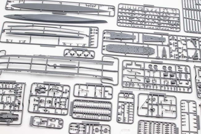 主砲換装/重巡洋艦となった昭和16~17年時の最上を追加専用金型によりフルハルタイプモデルで製品化 (基本的仕様) ・製品は接着組立と塗装を必要とする未塗装キットです ・スケールは1/700で、艦底部を含むフルハル仕様です ・従来(特シリーズ)の金型と新規追加金型で構成された製品です ・喫水線下は2025年、洋上部分は2019年設計金型で製品構成 (製品仕様) ・製品は最上型1番艦「最上」の昭和16年開戦時~昭和17年のミッドウェー海戦時をモチーフにしています →3.4番艦の鈴谷/熊野とは異なる艦体断面形状、缶室数が多いため給気トランク有無、煙突太さの違いを再現 →戦訓改造が行われる前の舷窓未閉塞姿を専用部品で再現 →2番艦の三隈との差異である後部マストを専用パーツで再現 ●艦体 ・最上型前期艦「最上・三隈」の舷側(中甲板レベル)が傾斜していない形状の艦体パーツは専用品 →舷側断面形状が後期艦の鈴谷・熊野とは異なる専用金型部品です →高角砲甲板の幅は鈴谷/熊野に比べ1.0mm(模型上)幅広いの専用部品で構成 →舷外電路は艦体に一体モールドとし、三隈/鈴谷/熊野とは異なる走り形状を表現 ・舷窓は未閉塞で数多くが舷側に並ぶ姿を繊細な彫刻で再現 →昭和18年以降の最上/鈴谷/熊野の舷側閉塞時とは差別化した専用金型でパーツ化 ・左右で分割式のパーツ構成、水線で乾舷・艦底を分割した構造 ●艦橋 ・艦橋窓はよりリアルに仕上げられる透明パーツ ・艦橋側方に缶室給気口がない最上/三隈専用とした艦橋構造物パーツを起用 ・防空指揮所、および羅針艦橋の床面には繊細なグレーチング敷きを彫刻表現 ・防空指揮所には取り付けるだけで精密感増す双眼望遠鏡パーツが付属 ・艦橋前方の機銃座は13ミリ連装機銃を専用パーツで用意、昭和18年以降との差異を再現 ・前部マストは電探未装備のシンプルな三脚構造を部品点数2点で再現 ●艤装品/中央部 ・艦橋前方に最上/三隈の前期艦のみに設置されている缶室給気トランクを専用部品で再現 ・前期艦の最上は後期艦に比べ、ボイラー12缶と多く搭載、特徴である太い煙突を用意 →鈴谷・熊野の前側煙路の細いタイプとは別の専用パーツで形状化 ・ファンネルキャップは「抜けた状態」とした成形パーツ ・蒸気捨管は精密感増す別パーツとして設計 ・煙突後方(探照灯下)構造物は最上/三隈専用のパーツを起用 ・リノリウム甲板は通気筒や装備品の配置が鈴谷/熊野と異なるため専用パーツで用意 ・12.7センチ連装高角砲座は最上/三隈専用パーツで、座の裏側には突起形状がない前期艦専用パーツ ・魚雷発射管は既存の航空巡洋艦最上用とは別の重巡洋艦用で専用開発したパーツ ・魚雷発射管の位置は任意の向きで選択再現できます →首尾線に沿った平常状態、旋回した発射態勢状態を再現可能 ・魚雷発射管が装備されるシェルター部は、予備魚雷格納所を含め公式図を基に立体化 ・床面はストリップ模様を繊細な高品位彫刻で再現 ・カタパルト(呉式二号五型)はスライド金型により側面/上面の造形をリアルに再現 ・航空作業甲板の中央部分には、後期艦との差異である給気口が存在しない形の専用部品で構成 ●艤装品/艦尾側 ・後部マストは横桁高さの個艦特徴を再現する最上専用パーツ ・昭和18年以降(航空巡洋艦)とは異なる電探未搭載を表現した専用パーツ ・後部マストはトップが後方傾斜・ヤードがY字形の最上専用部品が付属 ・ホイストクレーンは後期艦とは形状差を再現、細密な彫刻表現を施した軽め穴の形状が特徴 ・後部艦橋の側面は後期艦とは異なる配置の給気口を再現した専用パーツ ・3/4番主砲塔天蓋に設置された空中線支柱は、各艦固有の形状を再現した専用パーツ ●艤装品/武装 ・主砲砲身の仰角は固定式、砲塔は完成後も旋回可能 ・25ミリ機銃連装は銃身と銃架を別パーツ化した精密機銃パーツが付属 →成形色は基部は軍艦色、銃身はガンメタル →塗装の場合、各色を塗った後、ランナーごと組み合わせて接着する塗装塗り分けが楽な仕様 ●艦底 ・艦底パーツは左右一体パーツ構造 ・舷側バルジは喫水線以下をパーツ化、喫水線上方の艦体側バルジは艦体と一体の表現 ・シャフトブラケットの形状やエディプレートの曲面形状をリアルに表現 ・舵取り付け部の厚み再現、釣合式二枚舵の表面に彫刻を施し立体感ある設計 ・艦底部には給排水口を彫刻で表現 ・ビルジキールはバルジと一体で、バルジは性能改善後の大型となった外形形状を再現 ●艦載機 ・零式(三座)水上偵察機1機、九五式水上偵察機2機が付属 →九五式水偵は上翼やフロート3点を別パーツ化し精密感ある造形 →零式水上偵察機は主フロート、プロペラを別パーツ化した構造 ・作業性向上(ゲートカット時の破損防止)のため成形色はグレー ●デカール ・デカールは2種類、計2枚が付属 ・軍艦旗・国旗および艦載機の日の丸などマーキング類が収録したデカールが1枚 →軍艦旗等はサイズ3種を用意。 実物の10巾、6巾、3巾の寸法を1/700スケールとした内容 →艦載