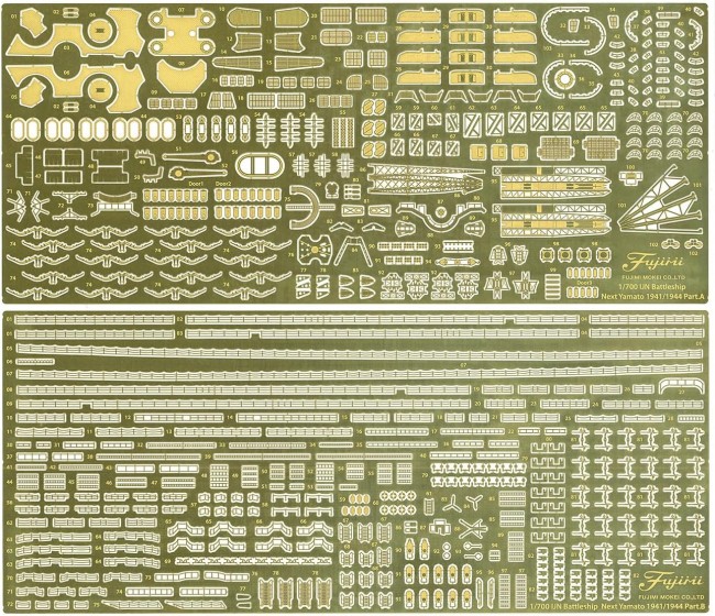艦NEXTシリーズ戦艦 大和 昭和19年/捷一号作戦時にエッチングパーツが付属して登場! 製品は2番艦「武蔵」と共にフィリピン防衛のために出撃した「レイテ沖海戦時」をモチーフにしています。 艦橋側面の22号電探取り付け部は移設前の姿を再現 最終時では撤去されていた艦尾のジブクレーン/空中線支柱を武蔵のそれとは異なる正しい形状で再現します 防空指揮所にはボーナスパーツとして双眼望遠鏡が備えられる仕様 煙突前部にある機銃射撃装置は増設前の姿としています。 艦体パーツは舷窓は閉鎖されたタイプで専用パーツを用意しました。 栗田司令長官座乗をあらわす中将旗が収録しています。 インジェクションパーツでは再現の難しい、細部に至るまで表現できるエッチングパーツを封入。 エッチングパーツは手摺、21・13号電探、方位測定器、梯子などを収録しています。 製品は接着剤を必要としないスナップフィット式で設計。 主要な部品は色分け済みプラスチック部品で表現、一部の色調部は表面追従性に優れたリアルシールで再現します。 モニターや画像解像度の問題により、色の見え方が実際の商品と異なることが御座いますので、予めご了承下さい。 (フジミ模型 ウェブサイトより)