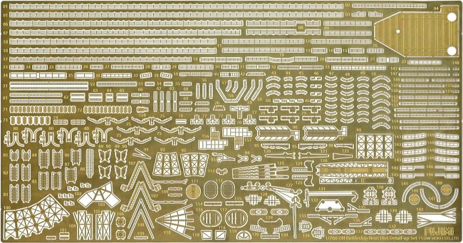第三次ソロモン海戦時の比叡のエッチングパーツ付きが復刻登場!! そのままでの仕上がりに飽き足らない方に、また、よりディテールアップを目指し、プラキットでは表現しきれない繊細な表現を追求したい方のためにエッチングもご用意しました。 塗装が不要:パーツそれぞれに成形色で着色されており、一部はシールと合わせて彩色を表現します。 接着が不要:パーツ同士をはめ込む設計仕様により簡単に組立てられるようになっています。 製品は昭和15年の改装後~第三次ソロモン海戦までの間の姿をモチーフにしています。 特徴である大和のテストベッドとなった艦橋形状を的確に立体化。 艦首のカーブ形状は、比叡のみが行った波切性能向上のための改造姿を再現。 艦底と艦体部品は分割設計となっており、洋上モデルとフルハルモデルの選択が可能です。 成形色は、艦隊が呉工廠色を再現したグレー、木甲板はライトベージュ、リノリウム甲板はダークブラウン、煙突トップは黒としています。 シールには切り込み入りの砲身防水布や軍艦期、応急資材木材などを収録 手軽に細部の色彩も表現できる仕様です。 シールにはサービス収録として、ミッドウェイ海戦時の砲塔上対空識別日の丸、中将旗なども含みます(切り込みはありません) □インジェクションパーツでは再現の難しい、細部に至るまで表現できるエッチングパーツを封入。 エッチングパーツには、手摺、ステップ、水密扉、ボートダビット、飛行甲板、カタパルト、クレーン、煙突周りの付加物、舷梯、トラス、ループアンテナなどを収録。
