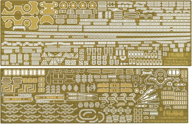 リアルに航行姿を表現できる波ベースが付属した「大和 昭和20年」がエッチングパーツ付きで登場。 【構造・仕様特徴】 ・色分け済みパーツで構成しており、塗装しなくてもイメージするカラーリングが再現されます。 ・スナップフィット式の組立なので、接着剤を使わず組立てできます。 ・洋上を航行する姿を再現・展示姿をよりリアルにカンタンに飾り立てる海面ベースが付属します。 ・インジェクションパーツでは再現の難しい、細部に至るまで表現できるエッチングパーツが付属します。 【製品特徴】 ・製品は昭和20年4月の天一号作戦(沖縄特攻作戦)時の姿をモチーフにしています。 ・スケールは1/700。 ・艦首や舷側、推進器から発生する航跡波を立体的に表現したプラ製・専用金型の展示用海面ベースが付属します。 艦体 ・艦体は左右分割式、水線で分割。 呉海軍工廠で使用された軍艦色を模した灰色の専用色で成形。 ・舷窓は多数が閉塞された姿とするため舷側パーツを専用化、未閉鎖は凹彫刻・閉鎖窓は凸彫刻でメリハリきいた再現度。 ・舷側に取り付けられたげた舷外電路は留め部分までしっかり表現。 兵装 ・主砲は俯仰・旋回が可能。 最小限のパーツかつリアルな造形の両立を実現。 ・46センチ主砲身の方向はスライド金型を用いて開口状態にしています。 ・2・3番主砲天蓋の増設された機銃座を再現するため主砲天蓋・機銃座ともに専用部品を用意。 ・副砲は旋回可能で砲身と砲塔は一体としたワンピース構造。 艦橋 ・艦橋は極力パーツ同士の継ぎ目を配するための分割・スライド金型の採用、パーツを一体化。 ・艦橋両側面にある22号電探は移設された姿を再現する専用品。 ・15メートル測距儀・方位盤は旋回可能とした設計。 ・艦橋後方には増設された兵員待機所、拡大された信号所甲板を専用パーツで用意。 煙突/マスト ・煙突は左右組合せ式で蒸気捨管や汽笛管、モンキーラッタルに至るまで一体表現しています。 ・頂部のキャップ部分(格子)は抜けた状態で奥行き感ある非常にリアルな造形。 ・マストは2ピース構造で、この時期に搭載されていた13号電探を一体化した設計。 艦載機 ・艦載機は濃緑色の専用カラーパーツで2機種を封入。 ・零式(三座)水上偵察機、零式観測機をそれぞれ1機ずつ。 ・パネルラインは凹彫刻で、プロペラはスライド金型により機体と一体化し精密な表現に。 展示用海面ベース ・プラ製の大和型喫水線形状に合わせた専用金型パーツです。(金型/2025年製) ・外寸は長396×幅134×高(約)17㎜、成形色はクリアーブルーです。 ・艦首から舷側へ広がる波や、舷側の抑えられた海面、推進器から発生する海面造形を再現。 ・喫水線の艦断面部分は艦NEXTシリーズの他に特シリーズの大和型にも対応。 ・艦首部は高さを嵩増しするための1㎜厚の紙製スペーサーが3個付属。 付属シール ・細部の彩色を手軽に行える貼付追従性に優れた切り抜き済みのシールが付属。 ・主砲・副砲の防水キャンバスや3番主砲後方の歩行帯、軍艦旗、艦載機日の丸マークなどを収録。 ・非理法権天の幟、煙突横の菊水マーク、最後の座上司令官伊藤整一中将の中将旗なども収録。 ボーナスパーツ ・より精密感を求めるユーザー向けに接着式のボーナスパーツを封入しています。 ・ボーナスパーツは機銃弾薬箱78個、マスト支柱、副砲天蓋上の空中線支柱。 エッチングパーツ ・より精度を高めたモデルの製作に役立つ真鍮製のエッチングパーツが2枚付属。 難しい艦体上の細かなディテール類を表現できます。 ・エッチングサイズ 1枚目:(約)62×180㎜ 2枚目:(約)53×180㎜ どちらも厚さは約0.1㎜。 ・エッチングパーツには、手摺、ラッタル、梯子、クレーン、煙突周り、13号電探、21号電探、方位測定器、防水扉、菊花紋章などを収録。 ・ボックスアートはイラストレーター黒川健史氏による描き下ろし。 晴天の中を波しぶきをあげながら高速航行する大和の姿を描いています。 ・成形パーツは全7色で構成。(呉海軍工廠色・艦底色・ブラック・濃灰色・ゴールド・濃緑色・クリアーブルー) ・完成時サイズ 長396×幅134×高88㎜(展示用海面ベースを含む) 【付属内容】 ・ランナー×24 ・海面パーツ×1 ・スペーサー×3 ・組立説明書×2 ・彩色シール×1 ・エッチングパーツ×2 モニターや画像解像度の問題により、色の見え方が実際の商品と異なることが御座いますので、予めご了承ください。 (フジミ模型 ウェブサイトより)