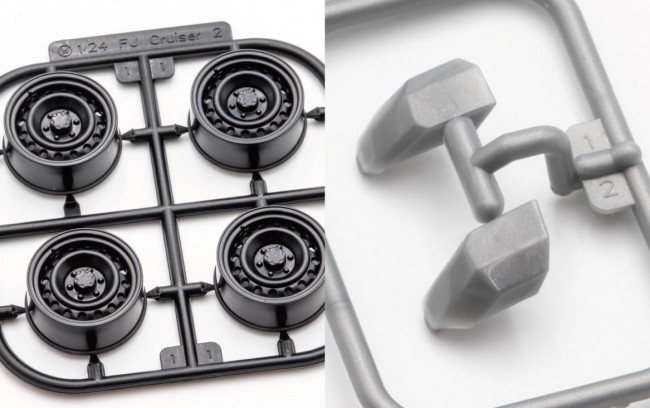 2010年に日本仕様として発売された初期のタイプを追加金型で製品化! (基本的仕様/製品シリーズの仕様) ・色分け済みパーツで構成しており、塗装しなくてもイメージするカラーリングが再現されます ・スナップフィット式の組立なので、接着剤を使わず組立てできます (製品仕様) ・1/24スケールで、実車形状を限りなく忠実に再現 ・製品モデルは2010年に日本市場向けとして販売されていた仕様車がモチーフ ・国内法規に従ったサイドアンダーミラー装備、フロントフェンダーにウインカー追加、後部ウィンカー変更などが特徴。 ・ホイールは、ベースグレード標準装備の17x7 1/2 Jスチールホイールを装備 ・フロントサイドバンパーはフロントフォグランプ非装備のタイプ ・サイドウィンドは基本設計を大きく変更し、窓枠とガラスを別パーツ化しています。 (製品特徴) ボディ ・組立てが容易な一体化パーツ ・サイド以外のボンネット・リア・ルーフはレイヤー構造で別パーツ化 ・パネルラインの彫刻は塗装組立て/スミ入れにも考慮した深さを設定 ・外板部分はアンダーゲートを用いており、ゲートカット面が露出して目立つことのない仕様 ・ボディはツートーンオレンジを模した色調の成形色で、専用の成形材料により塗装では再現難しい艶を表現 シャシー/アンダーフロア ・シャシーはラダーフレーム構造を一体再現したパーツ形状 ・パネルのコルゲート状の凹凸形状やサイドステップ裏面に至るまで立体的な形状で表現 ・ドライブシャフトやデフなど駆動系の艤装品は別パーツ化、中空感を演出します ・ラテラルロッドやトレーリングアームはシャシーとは一体化せず、独立した別パーツで用意 ・下回りパーツの成形色はブラックと、排気系マフラーパーツはシルバーで予め着色済み タイヤ/ホイール ・フロントタイヤは完成後もステアが可能、飾る際のステアポージングに自由度があります ・ホイールはベースグレード標準装備の17x7 1/2Jスチールホイールを装備 ・ホイールパーツはブラックの着色済み成形色 ・タイヤはFJクルーザー専用のパーツでゴム素材でリアルな質感 ・スペアタイヤはホイールカバー付で再現 ウィンド・透明系部分 ・サイドウィンドは窓枠とガラス部分を別パーツ化でリアルな形状と組立やすさを両立 ・枠とガラス面が別部品となり、塗装再現の場合はマスキングが不要 ・フロント・サイドのウィンカーはクリアオレンジで着色した成形パーツが付属 ・ブレーキランプはハイマウント部分を含めてクリアレッドで着色した成形パーツが付属 ・後席ウィンドガラスとリアガラスはスモーク状態を再現したクリアスモーク成形色のパーツを用意 その他細部 ・フロントおよびリアワイパーは単独パーツで、繊細な造形とサイズ感を表現 ・サイドミラーとバックミラーの鏡面はシールで再現 ・ルーフは艶を強調した専用の成形材料を使用したパーツが付属 細部彩色 ・付属するシールで細部の彩色を再現、切り抜き済みで簡単に貼ることが可能 ・シールにはメーターパネルやロゴ、車両ナンバーなどを収録 ・アナログメーターは2014年のマイナーチェンジ前のデザインを収録した専用品が付属 ・接着式組立て仕様のボーナスパーツ、ルーフラックが付属 ・窓ガラス圧接着部のブラック表現用にフィルムシールが付属 アウトドアパーツ(特別仕様製品に付属) ・車両へのアクセサリーおよび積載物パーツが付属 ・ルーフキャリアへの積載が似合うキャリアボックス、大・小サイズ各1個が付属 ・背面のラダー、スペアタイヤ上に取り付ける形のシャベルが各1個ずつ付属 ・成形色はいずれもブラック 成形パーツは全9色で構成 (オレンジ・ブラック・ホワイト・クリアーレッド・クリアーオレンジ・シルバー2種・クリアー・スモーククリアー) 完成時サイズ 194x86x85mm(高さはルーフキャリアを含みます) 使用金型について ①FJクルーザーのベース(前期/後期型共用部分)は2018年起用の金型を使用したパーツで構成 ②前期型の専用部分は2026年起用の金型を使用したパーツで構成 ③アウトドアパーツは2026年起用の新設計パーツ 【付属内容】 ランナーx22 ・ゴム素材パーツx4 ・シールx2 ・組立説明書x2 モニターや画像解像度の問題により、色の見え方が実際の商品と異なることが御座いますので、予めご了承ください。 (フジミ模型 ウェブサイトより)