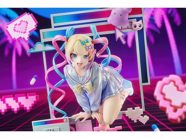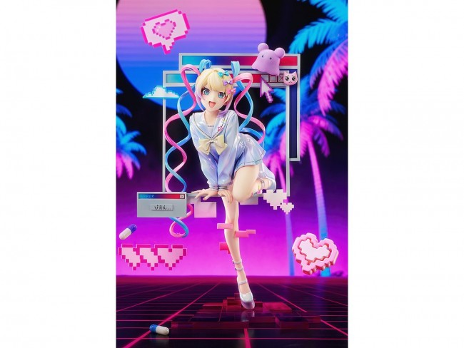 完成品フィギュア 『NEEDY GIRL OVERDOSE』より、インターネット・エンジェル「超絶最かわてんしちゃん」が、パソコンの画面から飛び出す姿で降臨! パソコンの画面から飛び出してくるかのようなポージングは躍動感にあふれ、片脚を軽やかに上 げ、わずかに前へ踏み出した動きによって、立体感と奥行きのある造形表現を実現しています。 生き生きとした瞳や表情は、キャラクターならではの可愛らしさを余すところなく再現。 衣装には 繊細なパール塗装を施し、光の当たり方によって変化する上品な光沢をお楽しみいただけます。 階段状デザインを取り入れたクリア台座は、安定感のある展示を可能にするとともに、作品の世界観をより一層引き立てます。 今にもあなたのもとへ駆け寄ってきそうな「エンジェル」を、ぜひお手元でお楽しみください。 商品仕様 作品名 NEEDY GIRL OVERDOSE 仕様 プラスチック製 塗装済み完成品 1/7スケール 専用台座付属 全高:約230mm 原型制作 Misaki 彩色 NIKU メーカー グッドスマイルアーツ上海 販売元 グッドスマイルカンパニー (C)WSS playground 注意事項 商品について 掲載の写真はサンプル品を撮影しています。実際の商品とは一部仕様等異なる場合があります。 商品の塗装は彩色工程が手作業になるため、商品個々に多少の差異があります。予めご了承ください。 台座や支柱は試作品です。実際の商品とは異なる場合がございます。 (グッドスマイルカンパニー ウェブサイトより)