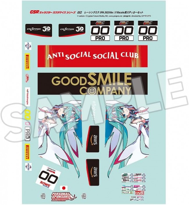 1/10 初音ミクGTプロジェクト GSRキャラクターカスタマイズシリーズ052 レーシングミク SPA 2025Ver. 1/10scale用ステッカーセット グッドスマイルカンパニー