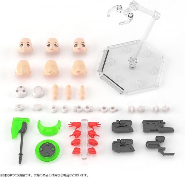 ハセガワ美少女プラモデルプロジェクト始動! [完全新金型] 1/12スケール(全高150mm)プラモデル開発進行中! プロポーションと可動域に拘ったオリジナルボディ! 【A.S.G ガールズ EMO-X0022 “アリア”】 〇接着剤不要 〇色分け済み、塗装不要 〇スタンド付属 〇武器パーツ付属 : 「アリア」ハンドガン、ホルスター、斧、盾、他 ・カラーパーツにより色分け再現を徹底! ・印刷済みフェイスパーツが付属 ・各部に3mm軸用アタッチメントパーツを用意! ・直径の異なる首ジョイントパーツを用意 ・展示用スタンド付属!