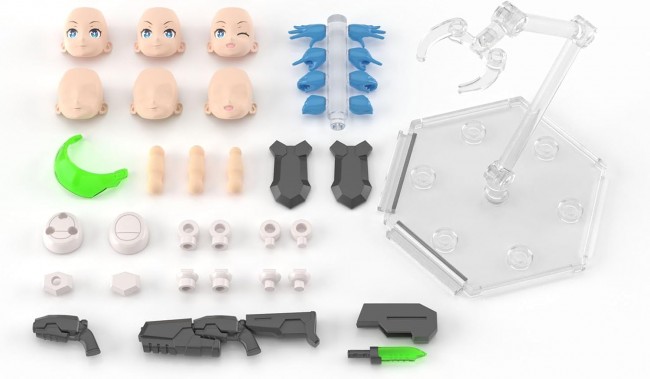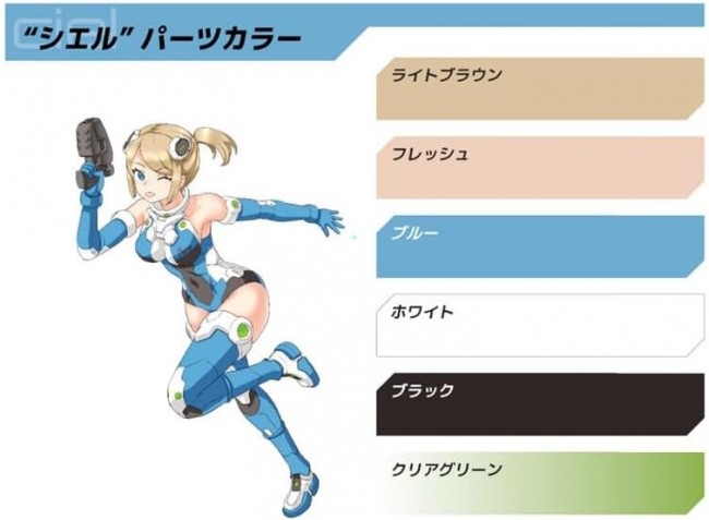 ハセガワ美少女プラモデルプロジェクト始動! [完全新金型] 1/12スケール(全高150mm)プラモデル開発進行中! プロポーションと可動域に拘ったオリジナルボディ! 【A.S.G ガールズ EMO-X0024 “シエル”】 〇接着剤不要 〇色分け済み、塗装不要 〇スタンド付属 〇武器パーツ付属 : 「シエル」銃、ホルスター、ナイフ、盾、他 ・カラーパーツにより色分け再現を徹底! ・印刷済みフェイスパーツが付属 ・各部に3mm軸用アタッチメントパーツを用意! ・直径の異なる首ジョイントパーツを用意 ・展示用スタンド付属!