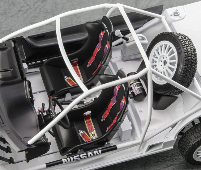 プラモデル 【スケール】1/24 【サイズ】模型全長165.5mm、全幅75.5mm 日産自動車(株)・日産モータースポーツ&カスタマイズ(株)監修中 強力なエンジンを搭載したコンパクト4WD! 新規部品を多数追加、WRC第5戦フクロポリスラリーに参戦したパルサーGTI-R登場! ボディパーツカラーはホワイト。 ヘッドライト/テールライトの鏡面 、ドアミラー鏡面 等がメッキパーツです。 窓の塗り分けシールが付属します。 追加プラ部品 ・フロントシート・左ハンドル用ダッシュボード・ステアリングホイール・ロールバー・消火器・ドアミラー・ベンチレーター・アンダーガード・排気管・ホイール・タイヤ 他 デカール(マーキング) ・ 1991年 アクロポリス ラリー出場車 1991年6月2~5日 Car No.18 ドライバー:デイビッド レベリン ・ 1991年 アクロポリス ラリー出場車 1991年6月2~5日 Car No.9 ドライバー:スティグ ブロンクビスト
