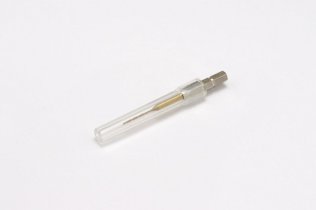 特殊構造の取付部を採用しており、「HGワンタッチピンバイス」と組み合わせることにより、ドリル刃の交換をワンタッチで行うことが可能です。ドリル刃の表面にはチタンコーティングが施してあり、切削性能が長持ちします。取付部の6角軸にドリル径を彫刻してあります。