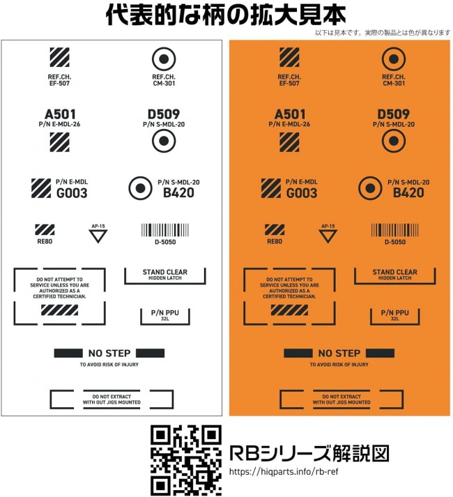 【スケール】1/144 【サイズ】110mm×156mm 「精緻」がテーマのコーションデカール 細かな印刷が精密感を引き出す! メカモデル向けの水転写式汎用コーションデカール。装飾を削ぎ落としたスタンダードなデザインが中心です(装飾ありのアクセント的なデザインは「RB02」に収録されています)。ある程度の可読性を確保していますので、公式ブログの文字解説を参考に貼る場所を選定してください。 基本色1色のみを使用する「ワンカラー」シリーズは、スッキリとしたイメージ作りに最適。光沢仕上げの時に、クリアコート層の濁りが目立ちにくい「研ぎ出し対応」のグロスデカールです。デカールが薄くて小さいため、扱いにくい場合は筆を使用して下さい。水を含ませた面相筆を使ってデカールをスライドさせ、水分を吸い取る時も筆を使うと扱いやすくなります。