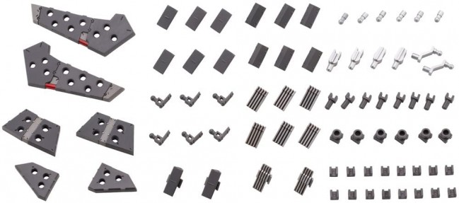 ディテールアップ用パーツ(SF) 人気シリーズ、エクスアーマーに「無限組み換え装甲ユニット」が登場!! コンセプトは「あなた好みの装甲を作り出そう!」 組み換え可能な大中小の装甲プレートとプレートを装飾できる多数の拡張装甲パーツで、あなただけの装甲を作り、メカプラモデル・美少女プラモデルを、よりあなた好みにカスタマイズできます! 本体仕様 ギミック ■装甲プレートは大中小あり、凹型の連結拡張アタッチメントにより各プレートのフチ同士を連結し様々な形状にすることが可能です。 ■装甲プレート裏側には3mm穴があり同径の軸を使って他キットに接続する事が出来ます。 ■プレート表面の3mm穴には多数の拡張装甲パーツを付けて形状を変化させることが可能です。 ■拡張装甲パーツは合計4種が付属。 ミリタリー感ある「装甲パネル」、 立体的な造型でボリュームアップが出来る「楔型爆発反応装甲」、 情報量を増やす「放熱板」、 厚さが合えば懸架も可能な「フック」が付属します。 組み合わせで様々な装甲を作り出すことが可能です。 ■連結拡張アタッチメントには複数の形状があり、凹型を基本として、裏面には3mm軸や3mm穴、平らな物などがあります。 凹型のアタッチメントで装甲板のフチをはさみこんで連結する仕様ですので、部分的にずらして取り付けるなど形状に変化を作り出すことが可能です。 ■成型色はグレーとシルバーの2色成型です。 ジョイントの3mm軸の裏面はマイナスモールドになっており、装甲プレートの表面側に出すことによって、シルバーのメカディテール表現としても使用できます。 ■別売りの「エクスアーマーC」の装甲板A・B・Cも対応しております。 付属品 ■装甲プレート(大)左右×1 ■装甲プレート(中)左右×1 ■装甲プレート(小)左右×1 ■拡張装甲パーツA(装甲パネル)×6 ■拡張装甲パーツB(楔型爆発反応装甲)×6 ■拡張装甲パーツC(放熱板)×6 ■拡張装甲パーツD(フック)×6 ■連結拡張アタッチメントA(3mm穴)×6 ■連結拡張アタッチメントB(3mm軸)×8 ■連結拡張アタッチメントC(平面)×16 ■斜め連結拡張アタッチメントA(装甲)×2 ■斜め連結拡張アタッチメントB(放熱板)×2 ■3mmジョイント×6 ■3mm変軸ジョイント×2 ■3mm可動ジョイント2種×各2 (C) KOTOBUKIYA ----- 作品/シリーズ M.S.G モデリングサポートグッズ スケール NON 製品サイズ 全長:約53mm 製品仕様 プラモデル パーツ数 51~200 素材 PS 設計 コマツマコト ※実際の商品に「メカサプライ25 エクスアーマーH」以外の商品は付属しません。 ※画像は試作品です。実際の商品とは異なります。 (コトブキヤ ウェブサイトより)