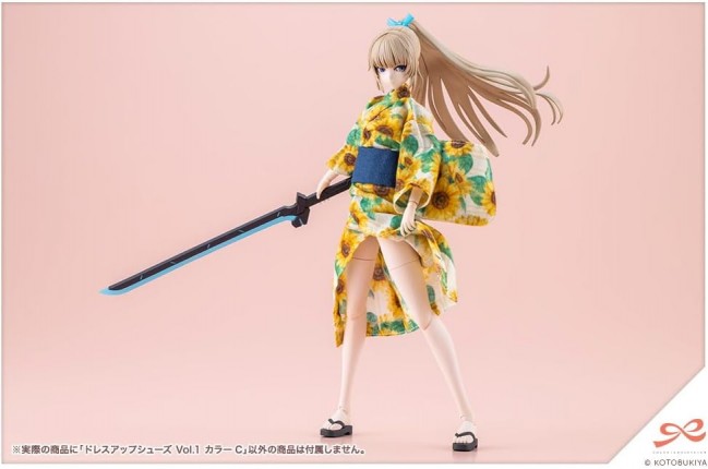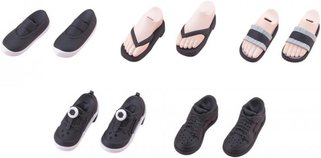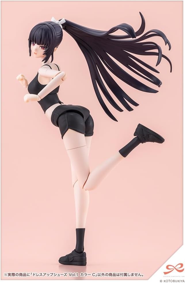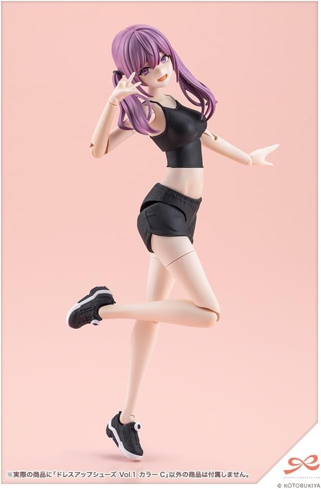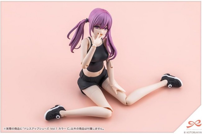 フィギュア用 小物・アクセサリーパーツ 「ドレスアップシューズ Vol.1」の成型色を変更したカラーバリエーションが登場! 「ドレスアップボディ」シリーズの足首に接続することで足元の着せ替えを楽しむことのできる靴パーツのセット。 色白のスキンカラーCにあわせたクールなモノトーンカラーに生まれ変わって再登場です! ▼こだわりポイント 【ダンスシューズ】 白と黒の2色で成型されており、塗装しなくても定番配色のダンスシューズとして楽しめます。 【ダイヤル付きスニーカー】 アクティブな学生達の新定番テック系スニーカー。 日常のお出かけから部活動まで幅広いシーンを演出できます。 【スニーカー】 使い勝手の良いカジュアルなスニーカー。 結城 まどか【桃桜高校・夏服】Black Canvasに使用されたスニーカーの未塗装版。 様々な服装と合わせやすいブラック一色です。 【フリルサンダル】 スカートにもパンツにも相性の良いデザインのサンダル。 白、黒、肌色の3色で成型されています。 【下駄】 夏の思い出を彩る下駄。 別売りの「タイニークローゼット 浴衣」と組み合わせると浴衣コーデが完成します。 【肌部分の成型色】 フリルサンダルと下駄の肌部分の成型色は色白のスキンカラーCを採用しており 「ドレスアップボディ【S】カラーC Ver.」「ドレスアップボディ【M】カラーC Ver.」 「ドレスアップボディ【L】カラーC Ver.」などと組み合わせて遊ぶことが可能です。 ※一部の制服ボディにも接続可能です。 形状的な制約がありますのですべてのキャラクターに対応するわけではございません。 ▼付属品 1)ダンスシューズ×左右分 2)ダイヤル付きスニーカー×左右分 3)スニーカー×左右分 4)フリルサンダル×左右分 5)下駄×左右分 製品スペック 作品 創彩少女庭園 シリーズ キャラクタープラモデル スケール 1/10 製品サイズ 全長:約20mm 製品仕様 プラモデル パーツ数 1~50 素材 PS・ABS 設計 丸家 裕之介 品番 MV021 初回発売月 2026年6月 (C) KOTOBUKIYA ※画像は試作品です。実際の商品とは多少異なる場合がございます。また撮影用に塗装されております。 (コトブキヤ ウェブサイトより)