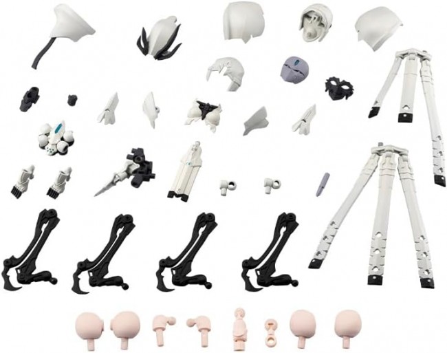 ディテールアップ用パーツ(SF) 魔導士をイメージしたメタモルフォーゼユニットが新カラーで登場! 本製品は「メタモルフォーゼユニット エクスアーマー ソーサレス」の成型色を変更したカラーバリエーションキットです。 【エクスアーマー ホワイトソーサレス】 フードタイプのヘッドギアと素顔を覆うスカルマスクは取り外しが可能。 スカルマスクの奥にある素体のマスクは三つ目になっており、額に第三の目が造形されています。 眼球可動ギミックを採用しており付属の治具を使って視線を変更することが可能。 マスクパーツは別売りの女性型メガロマリア商品のほか、創彩少女庭園のキャラクターの表情パーツと交換することが可能です。 また素体状態ではバイザーを取り外して創彩少女庭園のキャラクターの前髪パーツに交換可能。 フード装着状態でも一部キャラクター限定ですが前髪パーツを装着することができます。 装着可能な前髪は「結城 まどか」「小鳥遊 暦」「虹村 映美」「小石川 エマ」「ショートウィッグ」となります。 ※「源内 あお」「寿 武希子」の表情パーツや前髪パーツとは互換性はありません。 背後の「拡張義肢」は各部が可動し展開状態と収納状態にすることが可能。 付け根は4mm径ボールジョイントのため、女性型メガロマリアの腕部と交換して6本腕のキャラクターを作り出すことができます。 スカート状の装甲パーツはボールジョイント+複数の可動軸を使ったフレキシブルに動く構造を採用していますので幅広いアクションポーズを取らせることができます。 拡張義肢は取り外して「使い魔」形態として遊ぶことができます。 【拡張スキンパーツ】 発表以来大きな反響をいただいている「拡張スキンパーツ」が付属し、創彩少女庭園をはじめとした美少女プラモデルシリーズとの組み合わせがさらに捗る仕様になっています。 スキンカラーは色白のスキンカラーCを採用しており創彩少女庭園「薬師寺 久遠【篝火 真里亞・衣装】」との相性が抜群です。 【カラーリング】 成型色は6色です。 「ホワイト(シーカーと同色)」「ライトグレー(メフィストと同色)」「グレー(ギリードゥと同色)」「ブラック(ギリードゥと同色)」「クリアーブルー(エミュレータと同色)」「ホワイトフレッシュ(スキンカラーC)」 【付属品】 エクスアーマー ホワイトソーサレス×1セット 拡張スキンパーツ カラーC Ver.×1セット (C) KOTOBUKIYA ----- 製品スペック 作品 無限邂逅メガロマリア シリーズ TOKYO Mark キャラクタープラモデル スケール NON 製品サイズ 全高:約170mm(アーマー装着時) 製品仕様 プラモデル パーツ数 51~200 素材 PS・PE・ABS 設計 堀 克彦 品番 CX045 初回発売月 2026年6月 ※画像は試作品です。実際の商品とは多少異なる場合がございます。また撮影用に塗装されております。 (コトブキヤ ウェブサイトより)