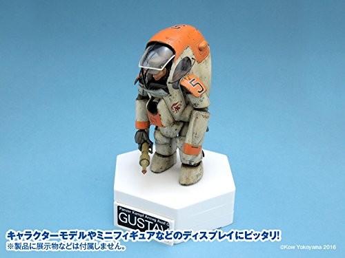 キャラクターモデルやミニフィギュアなどが映える白色のプラスチック製ディスプレイベース。