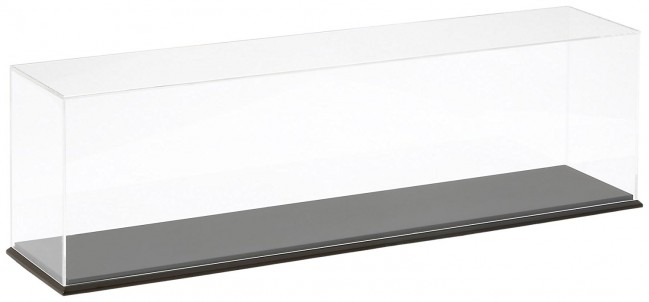 ★ケース部分は透明度が高い3mm厚のアクリル樹脂、MDF(中密度繊維板)の台座はダークブラウンのラッカー塗装仕上げ。