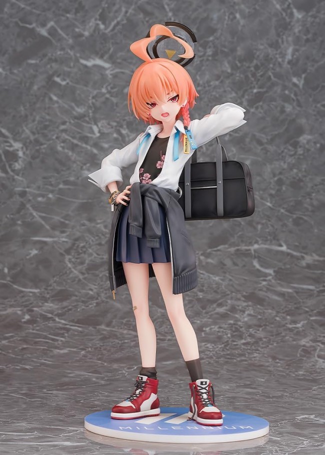 完成品フィギュア ミレニアムサイエンススクールの美甘ネル、ただいま参上したぜ、っと……。 大人気ゲーム『ブルーアーカイブ -Blue Archive-』より、ミレニアムサイエンススクール所属、秘密組織「C&C」のリーダー「ネル」を1/7スケールフィギュア化です。 普段のスカジャンを羽織ったメイド服からミレニアムの制服に着替えた姿にて立体化しました。 ラフに着崩したシャツとプリーツスカート、肩にバッグを引っかけたラフな出で立ちという、彼女らしい自信と余裕を感じさせる雰囲気を再現しました。 表情は鋭さと可愛らしさが同居する絶妙なバランスに整え、特徴的なアホ毛や編み込みヘアも制服姿に映えるような立体感を意識して仕上げています。 足元のスニーカーやアクセサリー、バッグは質感表現まで細部にこだわり、 普通の生徒としてのスタイルをそのまま立体に落とし込んだ作りとなっています。 また、不敵な笑みを浮かべた表情パーツも付属致しますので、お好みのスタイルでお楽しみください。 商品仕様 作品名 ブルーアーカイブ -Blue Archive- 仕様 プラスチック製塗装済み完成品 1/7スケール 専用台座付属 全高260mm(ヘイロー含む) 原型制作 間崎祐介 彩色 いもむ キャラクターデザイン原案 nemoga イラスト nemoga メーカー ファット・カンパニー 販売元 グッドスマイルカンパニー (C) 2026 NEXON Games Co., Ltd. All Rights Reserved. 注意事項 商品について 掲載の写真はサンプル品を撮影しています。実際の商品とは一部仕様等異なる場合があります。 商品の塗装は彩色工程が手作業になるため、商品個々に多少の差異があります。予めご了承ください。 台座や支柱は試作品です。実際の商品とは異なる場合がございます。 (グッドスマイルカンパニー ウェブサイトより)