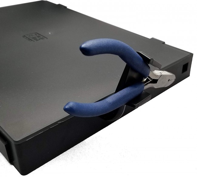 本体上面に金属製の網を配し、ゲートカットやヤスリがけなどの作業をこの網の上で行うことで、周りを汚さずに作業でき、後のゴミ処理も楽に行えます。