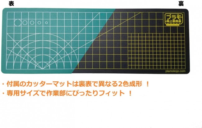 両面使用できるので緑の面で接着やパーツの切断、黒い面でマスキングテープやデカールのカットなど、作業に応じての使い分けも簡単です。