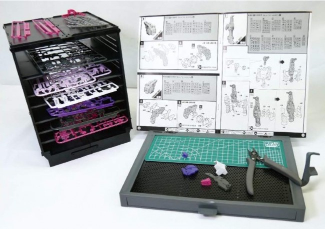 収納プレートは最大8セット使用可能、1/144スケールのキットならほとんどの種類に対応します。