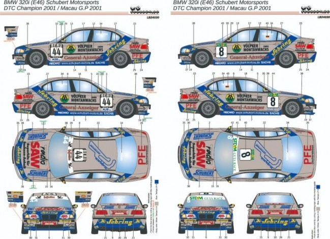 1/24 BMW320i E46 2001 DTCCウイナー 2001 マカオ ギアレース/DTC ドイツ ツーリングカーカップ チーム・シューベルト #8&#44 デカール付属 プラッツ