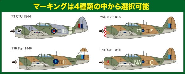 本家アメリカ陸軍のサンダーボルトとは違ったシックな魅力のみならず、標準的なイギリス戦闘機ともひと味違う独特の魅力を楽しんでいただける2機セットです。