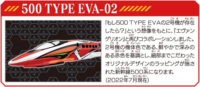 『エヴァンゲリオン』と再びコラボレーションした、オリジナル車両。 エヴァンゲリオン2号機のデザインをモチーフにラッピングが施された新幹線500系がプラレールに登場。 ■3両編成でそれぞれ連結・切り離し可能 ■のせかえシャーシ対応 ■2スピード・スイッチOFFで手転がし遊び可能 ※レールは付属しません。 【セット内容】車両本体(1),部品注文書(1) (c) TOMY (c)プロジェクト シンカリオン・JR-HECWK/超進化研究所Z・TX (c)カラー 単3形乾電池1本使用(電池は別売です。) ※誤飲防止のため、電池ケース蓋に「ネジ止め式」を採用しています。