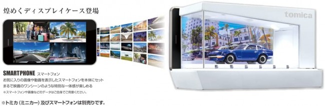 お気に入りのトミカを”かっこよく””おしゃれ”に飾れる、煌めくディスプレイケースが登場。 ・光量を2段階に調整可能な、LEDライトを内蔵 ・スマートフォン(別売)をセットすることで、お好みの映像や画像と共に臨場感ある展示が可能 ・床面には、スマートフォンの光を透過するインジケーターを搭載 ・約W110mm×H40mm×D50mmまでのミニカーやフィギュアなども飾れる設計 ・2段まで積み重ねて、展示することが可能 ※本商品は保護や保管を目的とした商品ではありませんのでご注意ください。 【セット内容】本体(カバー・ベース)(1),パーツカバー(1),タイヤ止め(4) (c) TOMY 単4形アルカリ乾電池3本使用(電池は別売です。) ※電池はアルカリ乾電池をご使用ください。 ※誤飲防止のため、電池ケース蓋に「ネジ止め式」を採用しています。
