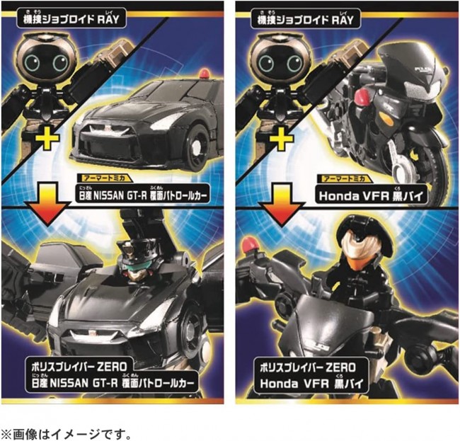 トミカから生まれた新たなヒーロー「トミカヒーローズ ジョブレイバー特装合体ロボ」から『ポリスブレイバーゼロ パーフェクトセット』が登場! アーマートミカ「日産 NISSAN GT-R 覆面パトロールカー」が機捜ジョブロイドと合体し、黒いジョブレイバー「ポリスブレイバーゼロ 日産 NISSAN GT-R 覆面パトロールカー」になるぞ! さらに、アーマートミカ「Honda VFR 黒バイ」が機捜ジョブロイドと合体し、黒いジョブレイバー「ポリスブレイバーゼロ Honda VFR 黒バイ」になるぞ! 別売りのジョブレイバーたちと一緒に街を守ろう! ・機捜ジョブロイドはジョブレイバーシリーズの別商品に付属するアーマートミカとも合体可能 ・本セットで1度に作れるジョブレイバー(ロボット)は1体です。 ・武器パーツが付属します 【セット内容】アーマートミカ(日産 NISSAN GT-R 覆面パトロールカー)上半身パーツ(1),アーマートミカ(日産 NISSAN GT-R 覆面パトロールカー)下半身パーツ(右)(1),アーマートミカ(日産 NISSAN GT-R 覆面パトロールカー)下半身パーツ(左)(1),アーマートミカ(Honda VFR 黒バイ)上半身パーツ(1),アーマートミカ(Honda VFR 黒バイ)下半身パーツ(右)(1),アーマートミカ(Honda VFR 黒バイ)下半身パーツ(左)(1),機捜ジョブロイド(1),武器(2),ラベル(1),取扱説明書(1) (c) TOMY