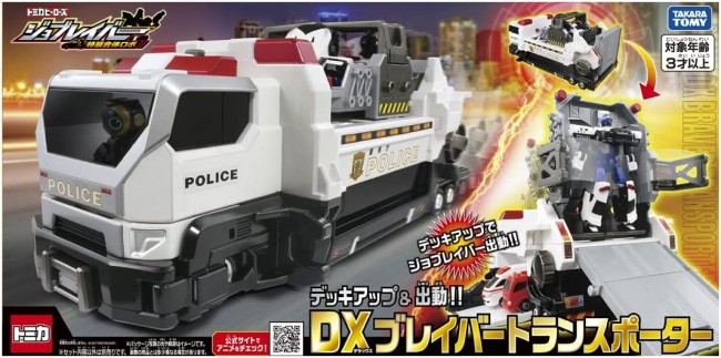 トミカから生まれた新たなヒーロー「トミカヒーローズ ジョブレイバー特装合体ロボ」から『ブレイバートランスポーター』が登場! ジョブレイバーで思いっきり遊べるビッグビークルが登場! デッキアップ&出動!DXブレイバートランスポーター3大ポイント (1)デッキアップ開始!ジョブレイバーが出動! ハンドルを回せばジョブレイバーデッキが上昇&スロープが展開! さらにハンドルを回せばゲートが開きデッキアップ完了! キミの手でジョブレイバーを出動させよう! (2)タイホールド発射!犯人を逮捕! 前部にあるボタンを押せばタイホールド発射!障害物にぶつかればアームは展開し、すぐさま犯人を逮捕できるぞ! (3)アーマートミカやジョブロイドで遊びつくそう! サイドガレージでアーマートミカの格納や、発車遊び、コックピット、メンテナンスポッドなどアーマートミカとジョブロイドで遊べるポイントが盛りだくさん! さらに!ジョブレイバーデッキや、サイドガレージはトミカでも遊べる! デッキアップ&出動!DXブレイバートランスポーターを遊びつくそう! 【セット内容】ブレイバートランスポーター本体(1),タイホールド(1),アーム(左)(1),アーム(右)(1),ゲート(2),ラベル(1),ラベル(1),取扱説明書(1) (c) TOMY