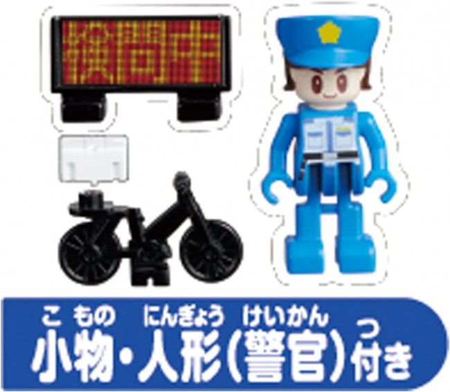 パッと開いてすぐ遊べるトミカタウンに交番が登場! 交番はガレージ付き。別売りのトミカを駐車させて一緒に遊べます。 警官、自転車、検問中看板など遊べるパーツ入り。警官は自転車に乗せて遊べます。 組み立て、ラベル貼り不要で本体をパッと開くとすぐに遊べます。 また遊ばないときは折りたたんでコンパクトに収納が可能です。 ※トミカ(ミニカー)は別売りです。 【セット内容】交番(1),人形(警官)(1),自転車(1),荷物(1),検問中看板(1) (c) TOMY