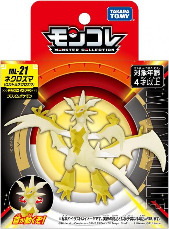 コレクショントイ( フィギュア・完成品 ) モンコレに「 ネクロズマ(ウルトラネクロズマ)」が登場! 首を動かして遊ぶことが出来ます。 モンコレは、ポケモンの姿を完全再現したハイクオリティなフィギュアのシリーズです。 頭の上から、後ろ、横、足の裏まで、忠実に再現しているから 手に取れば「 ネクロズマ(ウルトラネクロズマ)」の新たな秘密に気づくかも! サイズはMLサイズ(約10㎝)となります。 商品内容 フィギュア(1) (C)Nintendo・Creatures・GAME FREAK・TV Tokyo・ShoPro・JR Kikaku (C)Pokemon (タカラトミー ウェブサイトより)