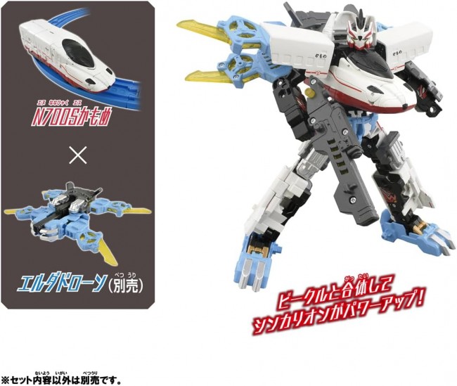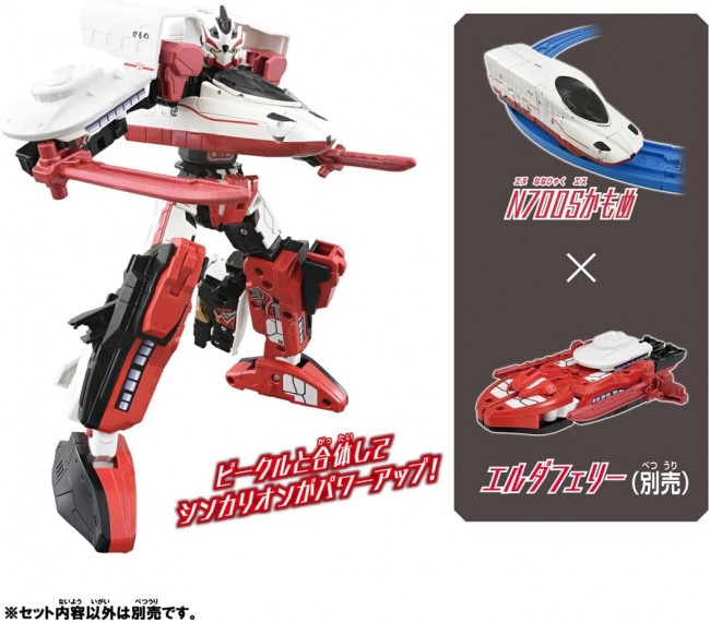 コレクショントイ( SF/アニメキャラクター・完成品 ) テレビアニメ「シンカリオン チェンジ ザ ワールド」から 『シンカリオン N700Sかもめ』が登場! 1両編成で、新幹線からロボットに変形! エルダビークルとの「ビークル合体」機能を搭載! 別売りのエルダビークル商品と合体して、シンカリオンがパワーアップ! 更にシンカリオンを3体集めることで「3両合体」が可能! シンカリオン、エルダビークルを組み合わせキミだけの最強合体フォームを作り出せ! ※レール、電動走行車両は入っていません。 商品内容 シンカリオン N700Sかもめ(1)、合体パーツ(1)、台車(1)、ラベル(1)、取扱説明書(1) (C)TOMY (C)プロジェクト シンカリオン・JR-HECWK/ERDA・TX (タカラトミー ウェブサイトより)