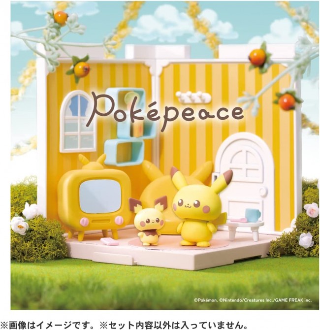 プラスチック製 組み立てフィギュアキット ポケモンたちの、 "ピース"なくらしをえがいた「ポケピース」から、 ポケモンとにんげんたちが集まるシェアハウスが商品化! ポケピースシェアハウス内にある、 かわいい リビング を完成させよう! ピカチュウ&ピチューのフィギュア2体付き! 商品内容 壁1(1)、壁2(1)、床(1)、接続パーツI型(2)、接続パーツL型(1)、接続パーツT型(1)、ドア(1)、家具・小物パーツ(ランナー)(4)、紙小物(1)、シール(1)、ピカチュウ(1)、ピチュー(1) (C)Pokemon. (C)Nintendo/Creatures Inc./GAME FREAK inc. (タカラトミー ウェブサイトより)