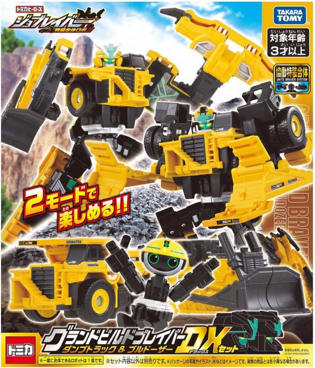 トミカから生まれたヒーロー「トミカヒーローズ ジョブレイバー 特装合体ロボ」に新たなビルドブレイバー、『グランドビルドブレイバー』が登場! ●ジョブレイバー初!2体のアーマートミカとジョブロイドでジョブレイバーが完成! アーマートミカ「コマツ HD785 ダンプトラック 」と「コマツ D475A ブルドーザー」と建設ビッグジョブロイドが協働特装合体し、「グランドビルドブレイバー」になるぞ! ●グランドビルドブレイバーは組み換えで2モードで楽しめる! ブルドーザーが腕のパーツになる、「ブルアームモード」そして、ダンプトラックが腕のパーツになる「ダンプアームモード」2つのモードで迫りくる脅威を打ち払え! ●別売りのジョブレイバーとも合体可能! (一部合体できない商品がございます。詳しくはジョブレイバーHPをご確認ください。) 新たなジョブレイバーを君の手で完成させろ! 【セット内容】アーマートミカ(コマツHD785 ダンプトラック)手足ユニットL(1),アーマートミカ(コマツHD785 ダンプトラック)手足ユニットR(1),アーマートミカ(コマツHD785 ダンプトラック)運転席パーツL(1),アーマートミカ(コマツHD785 ダンプトラック)運転席パーツR(1),アーマートミカ(コマツD475A ブルドーザー)手足ユニットL(1),アーマートミカ(コマツD475A ブルドーザー)手足ユニットR(1),ジョイントパーツ(1),カートリッジ(武器)(1),カートリッジ(黄色)(1),カートリッジ(黒)(1),建設ビッグジョブロイド(1),ブルアームバイザー(1),ダンプアームバイザー(1),取扱説明書(1),ラベル(1) (C) TOMY