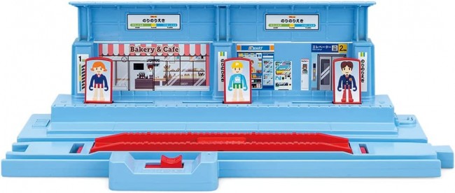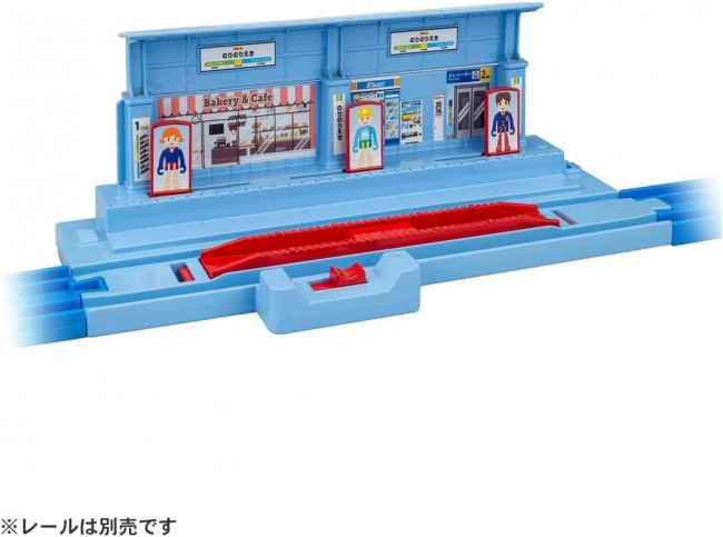 発車・停車に連動して乗客が消えたり現れたり!乗客が車両に乗ったように見える駅です! ■直線1本分の、ストップレール機能付きの駅です。 ■GO・STOPレバーをSTOPにすると、お客さんボードがホームに立ち上がり、GOにすると隠れて見えなくなります。 ■別売りのブロック橋脚に乗せて高架の駅にすることができます。 【セット内容】本体(1),屋根(1),お客さんボード(3),シール(1) (c) TOMY