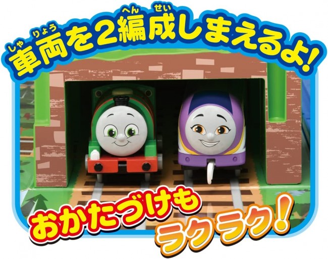 パッと開いてすぐに遊べてお片付けも簡単!トーマスの動力車がついたオールインワンセットが、2022年冬、12年ぶりにフルリニューアルされるアニメ「きかんしゃトーマス」仕様で登場! ・パッと開いてすぐに遊べる車両付きのオールインワンセットです! ・マップにはトーマスの仲間達がたくさんデザインされています! ・たたむだけでお片付け完了!車両を2編成収納することもできます! ・車両をレールにのせやすい「のせレール」で、小さなお子様でも遊びやすくなっています! ・3両編成のプラレールトーマスでも遊ぶことができます! ・別売りのレールでレイアウトを広げて遊ぶことができます! 【セット内容】GOGOトーマス スマイルver.(動力車)(1),おでかけ立体マップ本体(1),マップ専用坂レール(2),風車(1),風車羽(1),プレート(1),シール(1),部品注文書(1) (c) TOMY (c)2022 Gullane (Thomas) Limited. (c)2022 HIT Entertainment Limited. 単3形アルカリ乾電池1本使用(電池は別売です。) ※誤飲防止のため、電池ケース蓋に「ネジ止め式」を採用しています。
