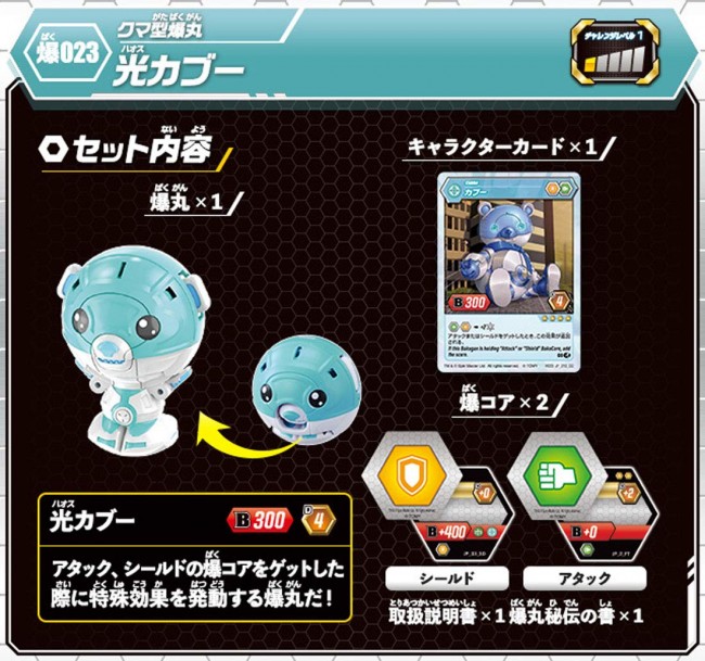 [セット内容]爆丸(1),キャラクターカード(1),爆コア(2),取扱説明書(A4)(1),爆丸秘伝の書(A5)(1)