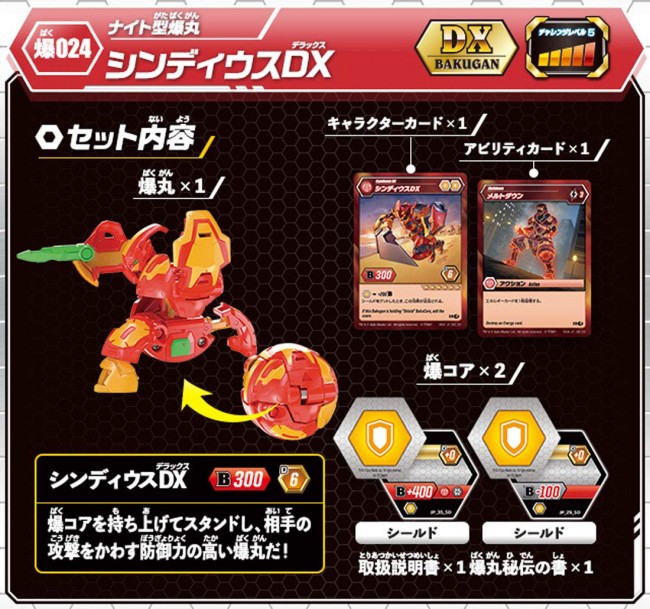 [セット内容]爆丸(1),取扱説明書(A4)(1),爆丸秘伝の書(A5)(1),キャラクターカード(1),アビリティカード(1),爆コア(2)