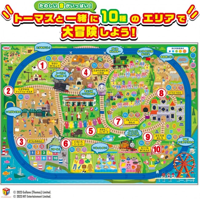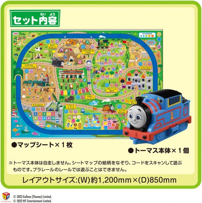 新しいトーマスでビッグサイズのマップをスキャン!トーマスと一緒にたのしく学んで遊べるプレイマップ ・たのしい音がいっぱい!マップのいろんなところを新しいトーマスでスキャン! ・トーマスと一緒に学んで遊べる、超ビッグサイズ(約120cm×85cm)のマップシート ・アルファベット、かず、いろ、かたちなどがたのしく学べる!おしごと、おかいもの、おんがくなどゲームやクイズがいっぱい!! ・10種のエリアで大冒険、タッチできるコード315箇所でたっぷり遊べる! ・パーシーやカナなど、トーマスのなかまたちとおしゃべり!キャラクターボイス(全5キャラクター)63種収録 ・アニメのオープニング曲収録(ボーカル入り/メロディー) ・マップシートのレールイラストに合わせてレール(別売り)を置ける! ・パッと広げてすぐに遊べる!省スペースでお片付けも簡単! 【セット内容】マップシート(1),トーマス本体(1) (c) TOMY (c)2023 Gullane (Thomas) Limited. (c)2023 HIT Entertainment Limited. 単4形アルカリ乾電池2本使用(電池は別売です。)