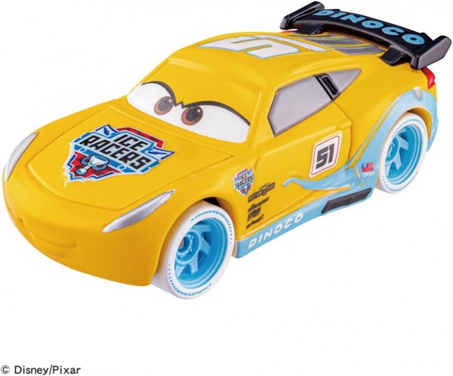 寒冷地でのレースをテーマにした、アイスレーシングタイプのクルーズ・ラミレスが、カーズ トミカに登場! アイスレーサーズのマークとゼッケンをつけた、レース仕様のクルーズです。 氷上を走る疾走感を白いタイヤで演出。 勇ましいクルーズの表情にも注目です! 【セット内容】本体(1) (C) Disney/Pixar