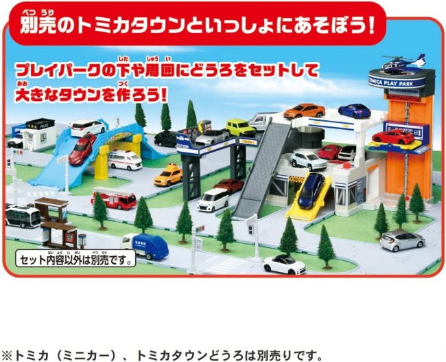 クルマ・バイクおもちゃ用 パーツ・アクセサリー フロアをひろげれば広々遊べる手遊びたくさんのトミカ入門にもおすすめのセットです。 「エレベーター」「スロープ」「駐車」「給油」といった、トミカの基本の手遊びが盛り沢山です。 人気のトミカ一斉発車遊びも楽しめます。 収納時はコンパクトにトミカを収納、フロアがくるっと回転して楽しくおかたづけができます。 別売りのトミカタウンどうろのレイアウトに組み込んで一緒に遊べます。 ※トミカ(ミニカー)は別売りです。 商品内容 本体(1)、ヘリポート(1)、支柱(2)、2階スロープ(1)、4階スロープ(1)、ラベル(1) (C)TOMY (タカラトミー ウェブサイトより)