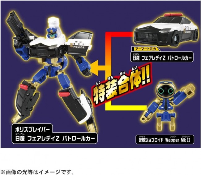 アクションフィギュア(アニメ/SFキャラクター) トミカヒーローズ トミカ ジョブレイバー ギガントポリスブレイバー KOBANアーマーDXセット ●新たなアーマートミカ「日産 フェアレディZ パトロールカー」と警察ジョブロイドが特装合体し、 警察のロボット「ポリスブレイバー 日産 フェアレディZ パトロールカー」になるぞ! ●KOBANアーマーがアクティベート!「警察犬ワンワンマル」に変形するぞ! ●「ポリスブレイバー 日産 フェアレディZ パトロールカー」と「警察犬ワンワンマル」が超特装合体! 『ギガントポリスブレイバー KOBANアーマー』になるぞ! 今までのジョブレイバーより大きい、新たなジョブレイバーを君の手で完成させろ! ●「警察犬ワンワンマル」にはジョブレイバー、ジョブロイドが搭乗可能! ※「警察犬ワンワンマル」は「JB06 Honda VFR 白バイ」、「ポリスブレイバーZERO Honda VFR 黒バイ」を除く、 23年2月時点で発売しているすべてのジョブレイバーと合体可能です。 ※「JB06 Honda VFR 白バイ」、「ポリスブレイバーZERO Honda VFR 黒バイ」はギガントポリスブレイバーの腕に装着可能です。 商品内容 アーマートミカ(日産 フェアレディZ パトロールカー)上半身パーツ(1)、アーマートミカ(日産 フェアレディZ パトロールカー)下半身パーツ(右)(1)、アーマートミカ(日産 フェアレディZ パトロールカー)下半身パーツ(左)(1)、警察ジョブロイド(1)、武器(2)、KOBANアーマー本体(1)、KOBANアーマー(中央)(1)、KOBANアーマー(右)(1)、KOBANアーマー(左)(1)、警察犬頭パーツ(1)、KOBANバイザー(1)、ラベル(2)、取扱説明書(1) (C)TOMY (タカラトミー ウェブサイトより)