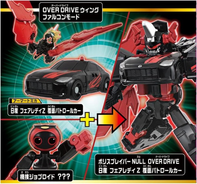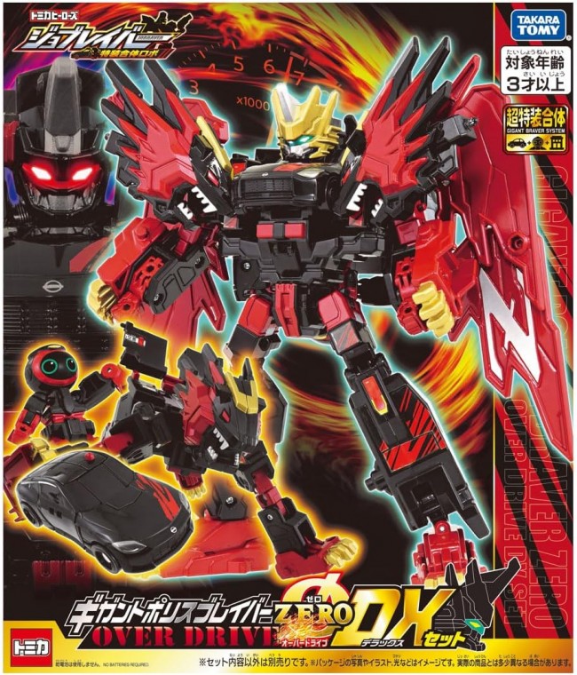 トミカから生まれた新たなヒーロー「トミカヒーローズ ジョブレイバー 特装合体ロボ 」から『ギガントポリスブレイバーZERO OVER DRIVE DXセット』が登場! ●アーマートミカ「日産 フェアレディZ 覆面パトロールカー」と機捜ジョブロイドが特装合体し、「ポリスブレイバーNULL OVER DRIVE 日産 フェアレディZ 覆面パトロールカー」になるぞ! ●KOBANアーマーがアクティベート! 「百獣帝王ゼロレオン」に変形するぞ! ●「ポリスブレイバーNULL OVER DRIVE 日産 フェアレディZ 覆面パトロールカー」と「百獣帝王ゼロレオン」が超特装合体! 『ギガントポリスブレイバー NULL OVER DRIVE 』になるぞ! ※「百獣帝王ゼロレオン」は「JB06 Honda VFR 白バイ」、「ポリスブレイバーZERO Honda VFR 黒バイ」を除く、24年4月時点で発売しているJBシリーズのジョブレイバーと合体可能です。 さらに、付属のZERO OVER DRIVEマスクを装着すれば、警察のジョブレイバー『ギガントポリスブレイバーZERO OVER DRIVE』に! 新たなジョブレイバーを君の手で完成させろ! 【セット内容】アーマートミカ(日産 フェアレディZ 覆面パトロールカー)上半身パーツ(1),アーマートミカ(日産 フェアレディZ 覆面パトロールカー)下半身パーツ(右)(1),アーマートミカ(日産 フェアレディZ 覆面パトロールカー)下半身パーツ(左)(1),機捜ジョブロイド(1),銃パーツ(1),ウィングパーツ1(右)(1),ウィングパーツ2(右)(1),ウィングパーツ1(左)(1),ウィングパーツ2(左)(1),接合パーツ(1),NULL OVER DRIVEマスク(1),ZERO OVER DRIVEマスク(1),KOBANアーマー 本体(1),KOBANアーマー 中央パーツ(1),KOBANアーマー 右パーツ(1),KOBANアーマー 左パーツ(1),KOBANアーマー 警棒パーツ(1),前足パーツR(1),前足パーツL(1),後足パーツA(1),後足パーツB(1),頭パーツR(1),頭パーツL(1),ラベル(2),取扱説明書(1) (C) TOMY